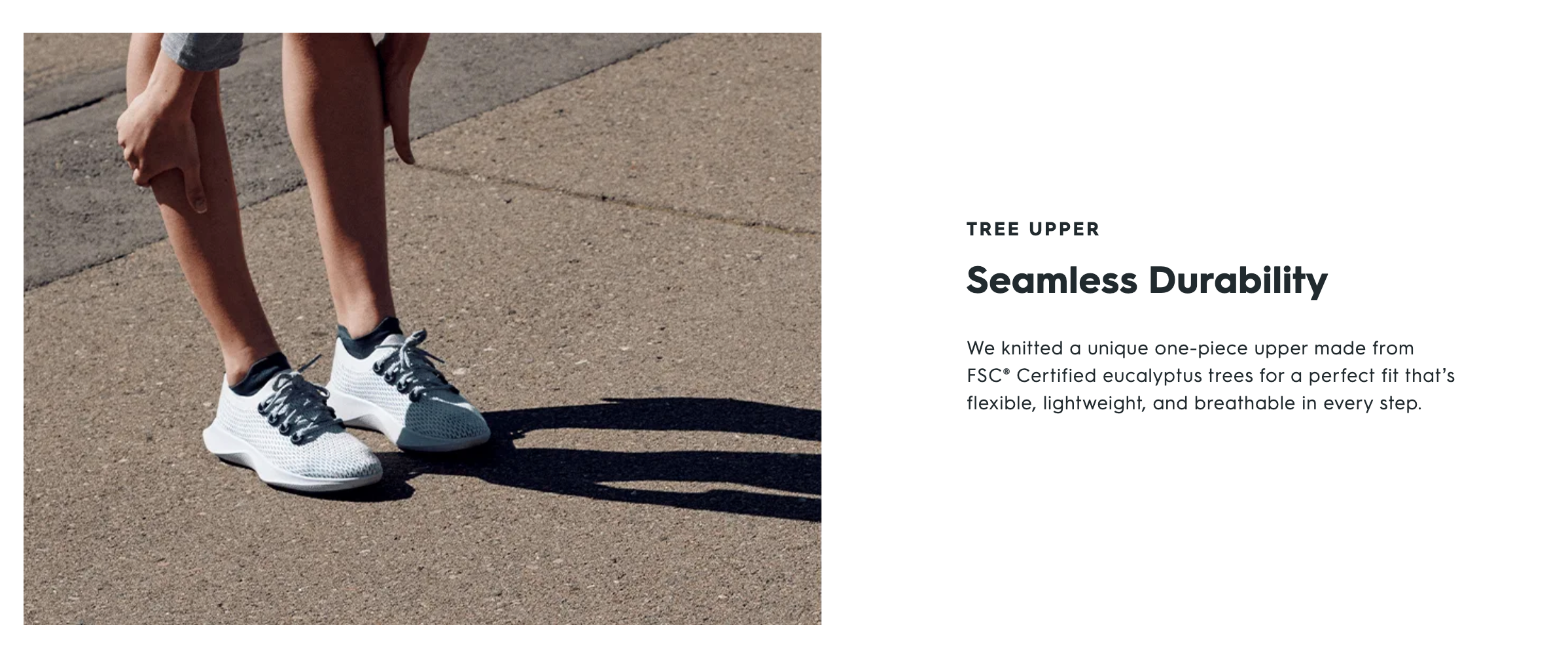 Take the popular footwear retailer Allbirds… Each of their product pages has the flow described above in place – images on left and on the right is the title, price and the add to cart section… Then underneath, they’ve used some awesome imagery with key text to further sell each of their designs.