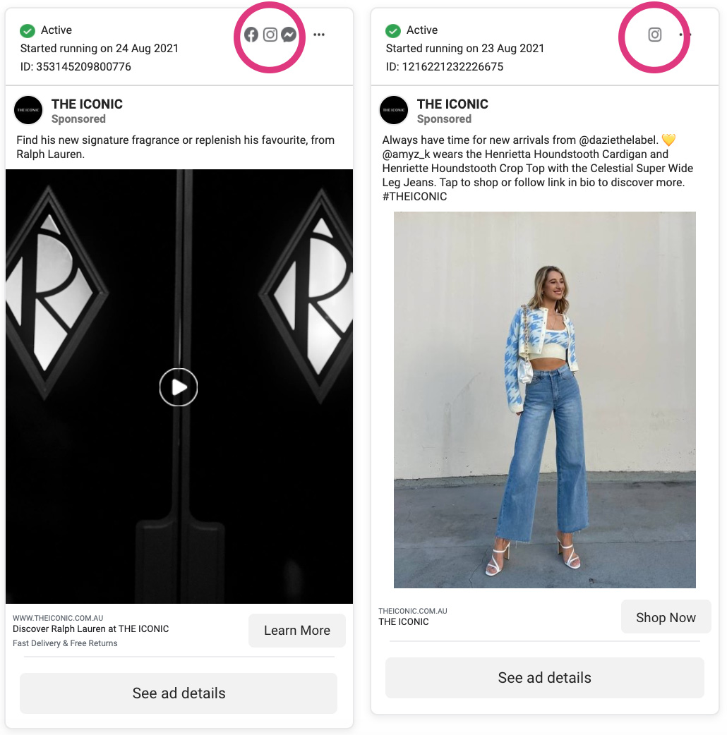 With the top section of each ad, you’ll be able to see little icons that represent where that ad is being shown.